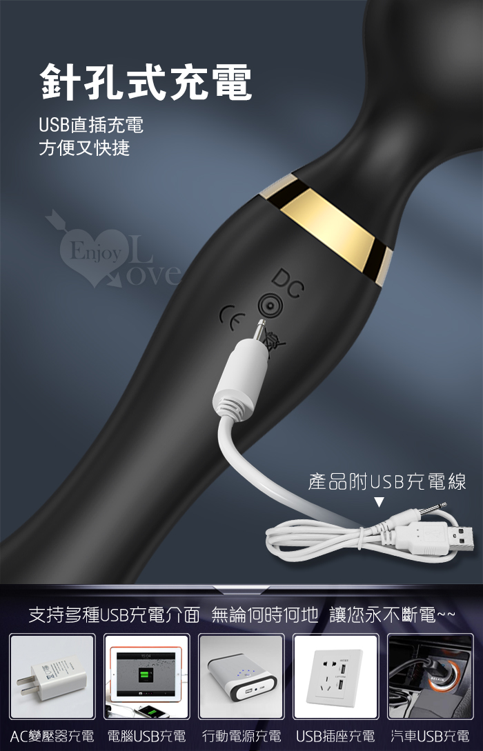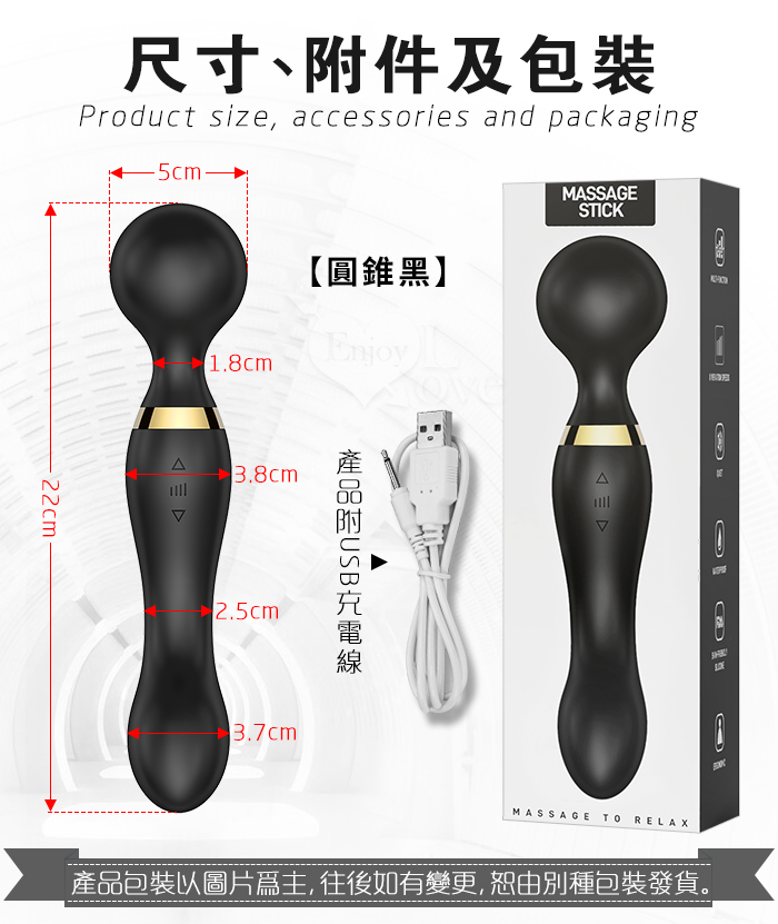 Desire 浪潮慾女 ‧ 圓錐款 8x20頻強悍震感G點AV按摩棒﹝雙頭雙震+360度彎曲+舒適硅膠﹞黑