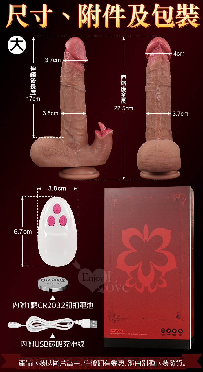 樂翻天Ⅱ代.伸縮衝撞+舌戰撩震 無線遙控超仿真肉感描青筋血管老二棒-大﹝9頻雙調控+智能加溫+強力吸盤+磁吸充電﹞