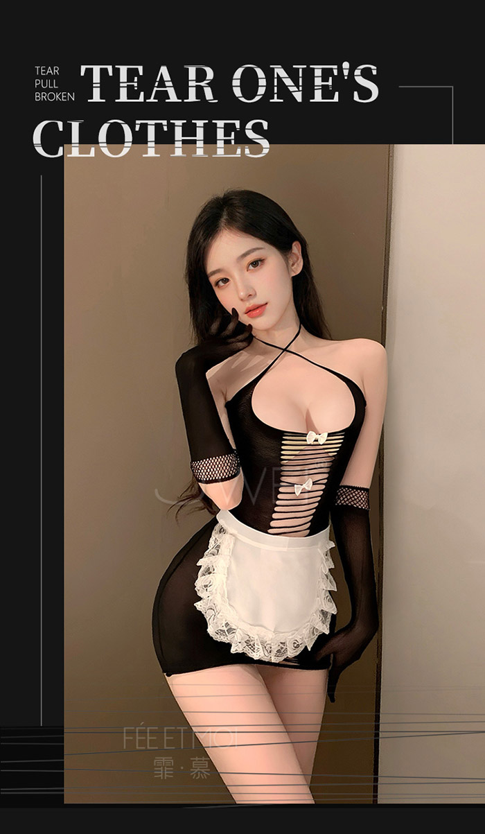 首頁>嬌俏女僕.火辣條紋露胸可撕網衣女樸套裝-酒紅【連身網衣+圍裙+手套*2】