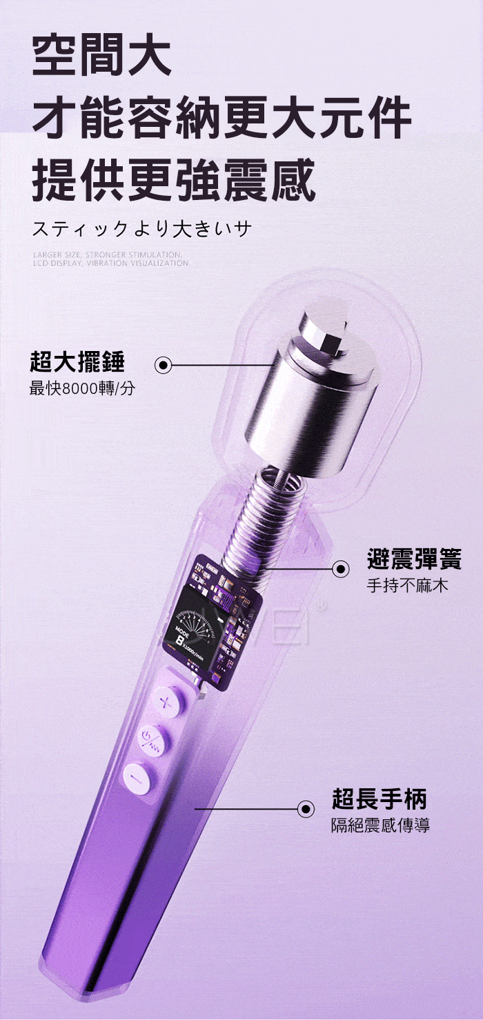 謎姬 MizzZee.迅潮.8頻8強大頭高頻爽震 360度靈活頭部 液晶數顯吹潮AV棒