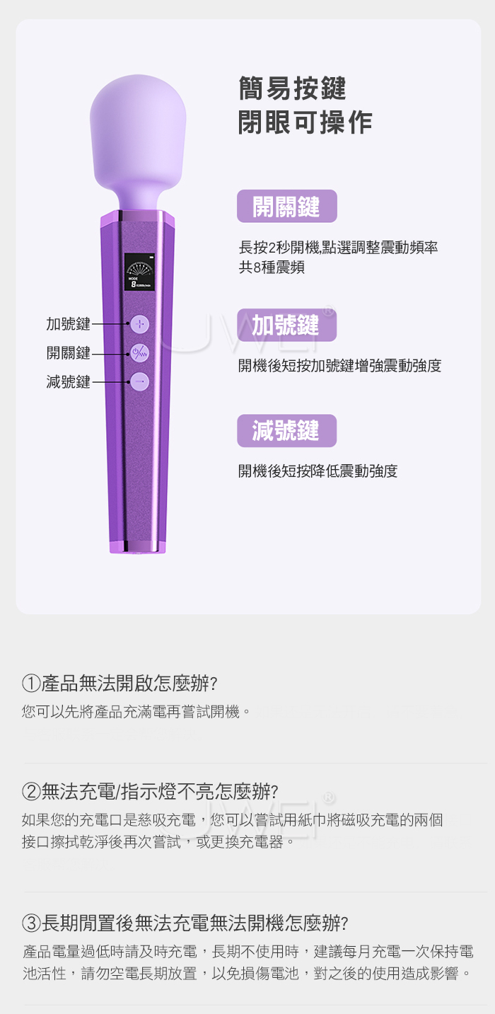 ►您現在的位置:首頁>謎姬 MizzZee.迅潮.8頻8強大頭高頻爽震 360度靈活頭部 液晶數顯吹潮AV棒