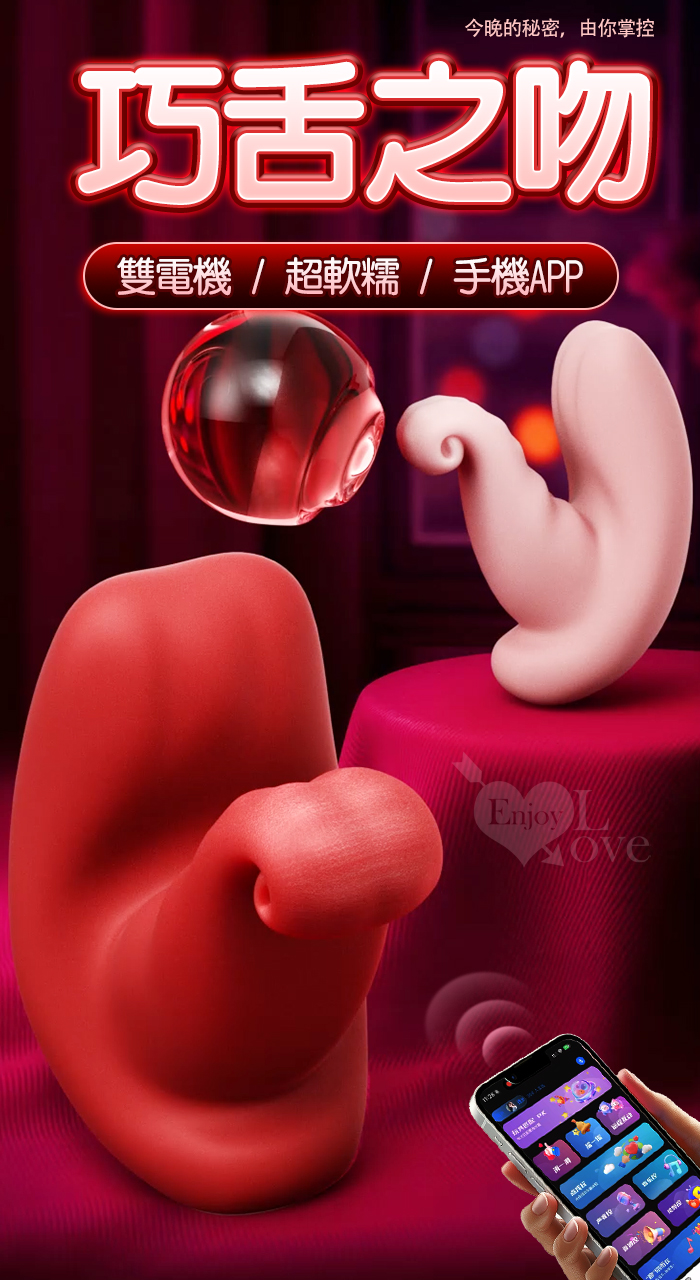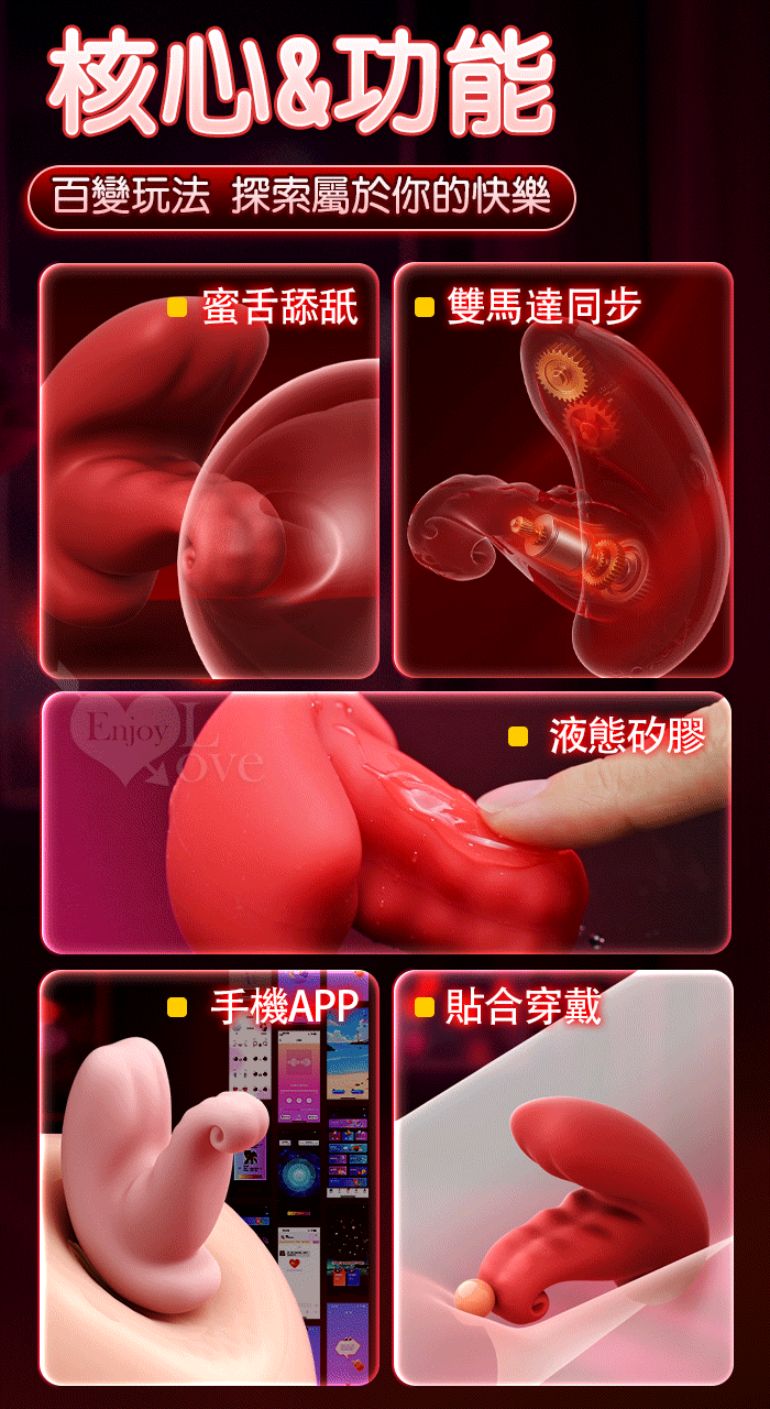 勞樂斯 ‧ 巧舌之吻~雙電機/10頻強震/超軟糯/貼合入體/內外同爽/手機APP/ 百變玩法穿戴按摩器 ﹝具兩種操控模式﹞酒紅