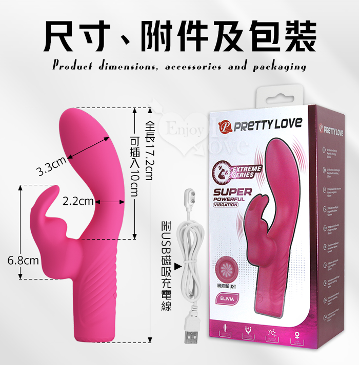 派蒂菈 ‧ Elivia 愛莉維亞 大震撼雙馬達內外雙潮 10變頻炫彩強震動按摩棒-玫
