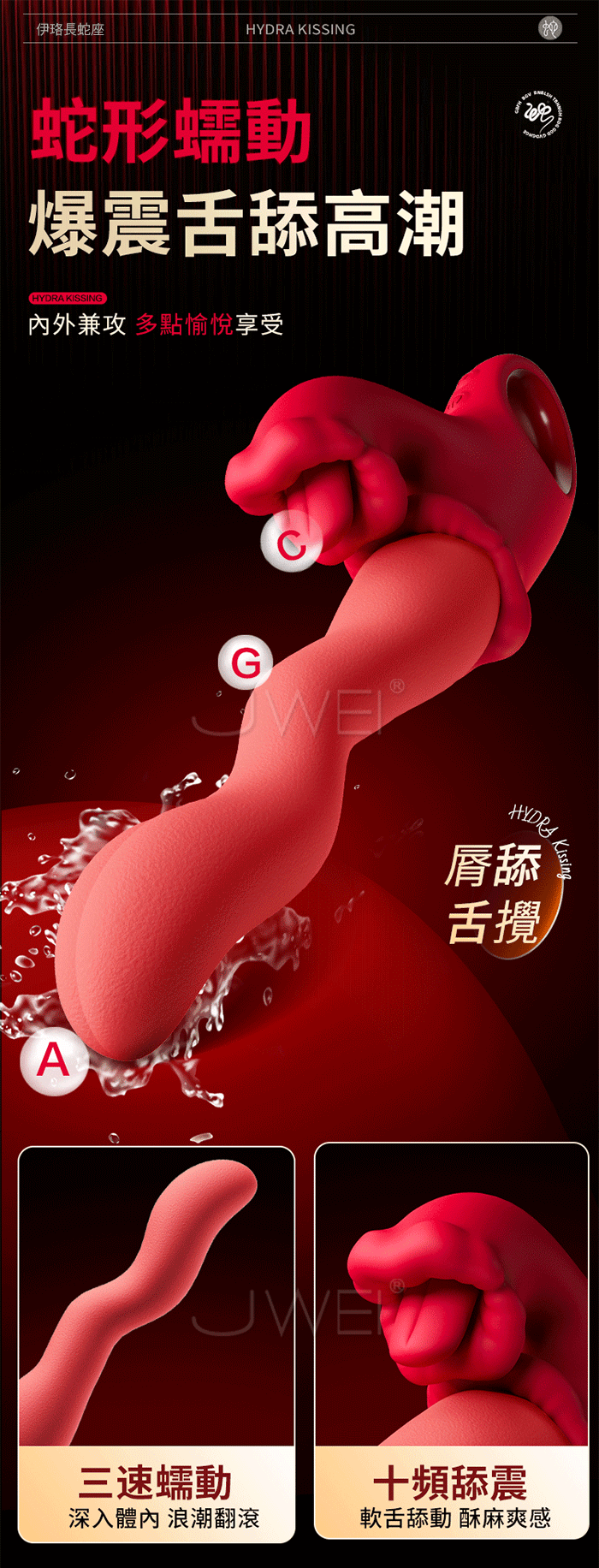 ►您現在的位置:首頁>EROCOME伊珞.HYDRA Kissing 長蛇座接吻 3速蛇型蠕動+10頻舌攪舔震按摩棒