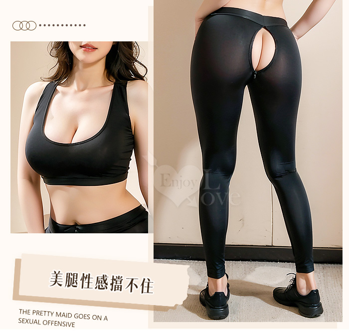 | 【棉花糖女孩】大尺碼情趣睡衣!冰絲順滑緊身小可愛 × 雙頭拉鍊免脫瑜珈褲|機能二件組﹝灰﹞