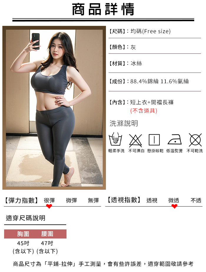 ►您現在的位置:首頁>【棉花糖女孩】大尺碼情趣睡衣!冰絲順滑緊身小可愛 × 雙頭拉鍊免脫瑜珈褲|機能二件組﹝灰﹞