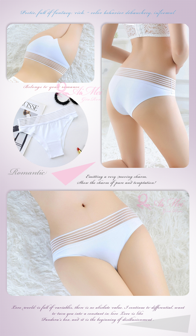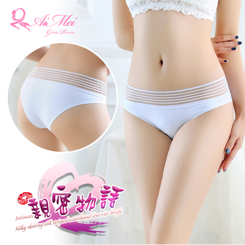 | 親密物語!絲滑冰絲條紋褲頭低腰三角褲﹝白﹞