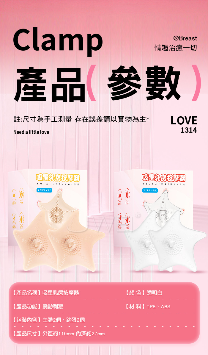 吸星乳貼 酥麻爽乳雙峰爆震 凹凸顆粒多點震動凸點更刺激! 強震乳尖 輪番刺激 失控難以控制,密合貼乳 精準包裹,親膚柔軟更細膩 ■尺寸:大小詳如圖片標示 ■材質:矽膠+ABS ■供電:LR44鈕扣電池 ■規格:一對裝 ■功能:單頻震動