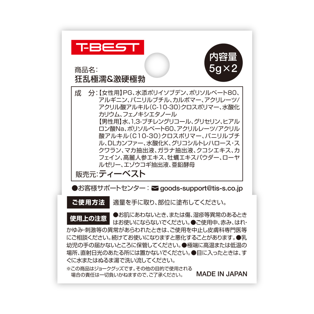 | 日本 T-BEST 激愛組合女用狂亂極濡+男用激硬極勃軟霜(5gx2)