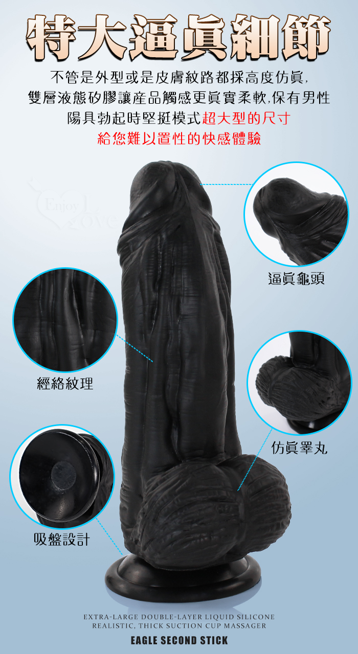 | Eagle 鷹雕~特大號雙層液態矽膠吸盤式逼真粗壯按摩棒-10吋/直徑6.5公分﹝黑色﹞