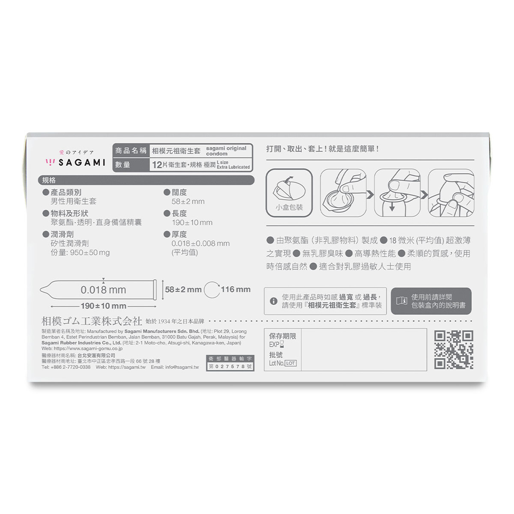 核定品名:相模元祖衛生套 Sagami original condom