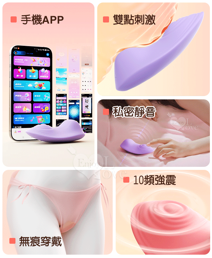 ROSELEX 小蕾逗 ‧ 10頻強震隱形穿戴按摩器﹝親膚矽膠/內褲隨搭貼身/兩種操控模式﹞可手機APP遙控 - 紫