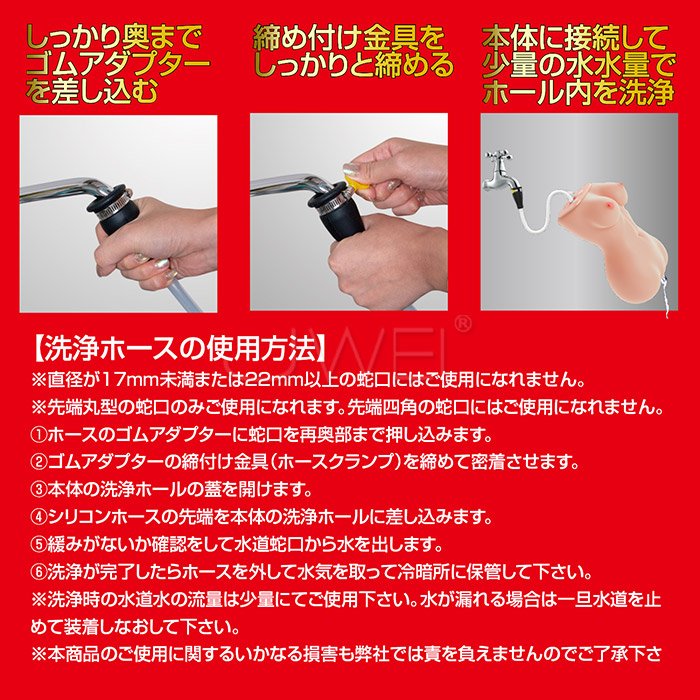 隨盒附送清洗套裝(不可用於直徑小於17mm或大於22mm的水龍頭),讓你能直接從子宮沖洗,清潔易如反掌!