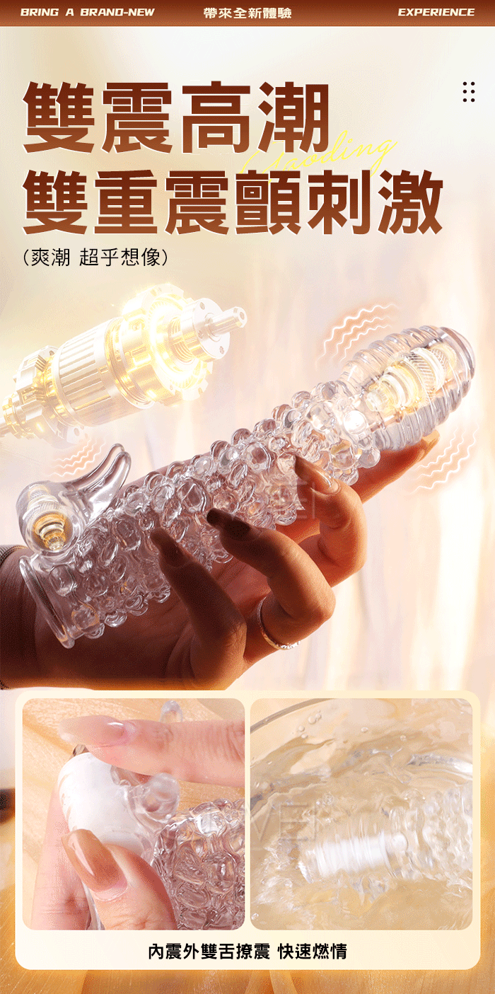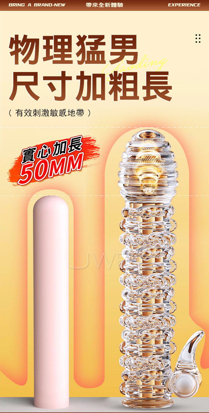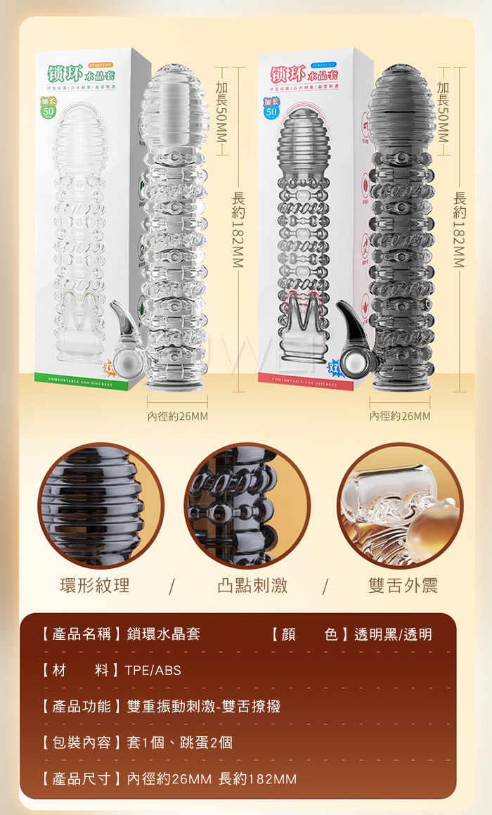 | 鎖環.雙舌撩撥 雙重震動刺激 環形紋理加長加粗水晶老二套【透明】