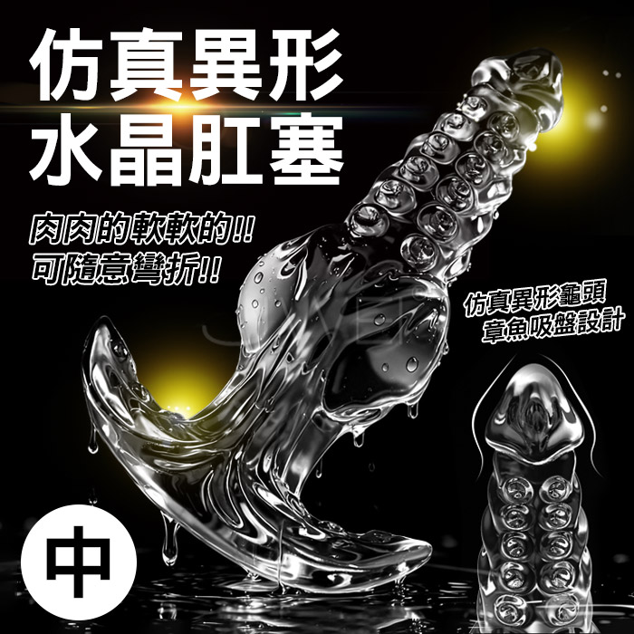 異形水晶.仿真異形龜頭章魚吸盤 透明水晶矽膠肛塞【中】
