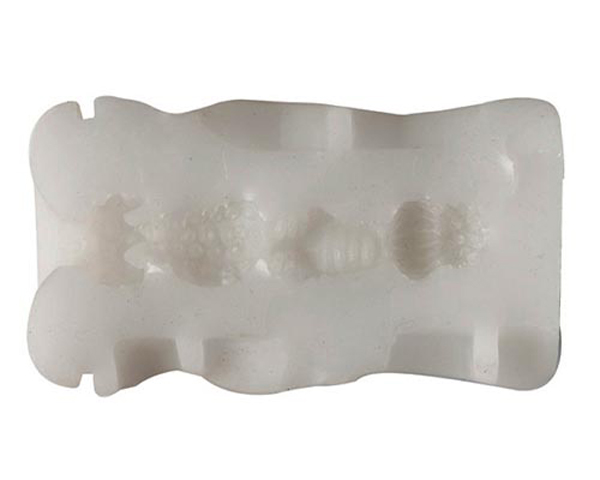 而在開口後面是牙狀的放射型肉條,這些肉條佈滿了整個膣壁,看起來應該會很刺激,可是實際上因為自慰杯用的材質超級軟嫩,所以這些肉條並不會有刮附感,反而是一股很軟嫩的擠壓感,擬真度十足(就插入的感覺而言)。