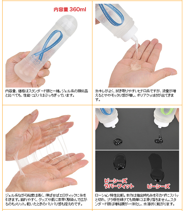 スタンダード版「Peace‘s(ピーシーズ)」のファンはもちろん、「アストログライドジェル」や「K-Yゼリー」などのジェル系ローションを愛用していた方々も満足できるかと思いますので、ぜひ一度お試しください。