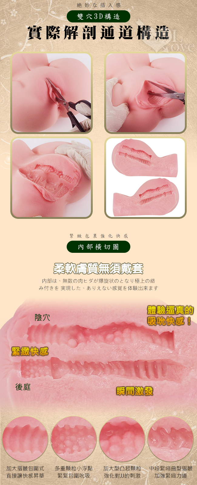 | ✦限量出清✦雪膚 ‧ 細皮嫩肉顆紋二穴構造高度臨場感再現名器﹝3.6kg﹞附小可愛內褲+200ml潤滑液