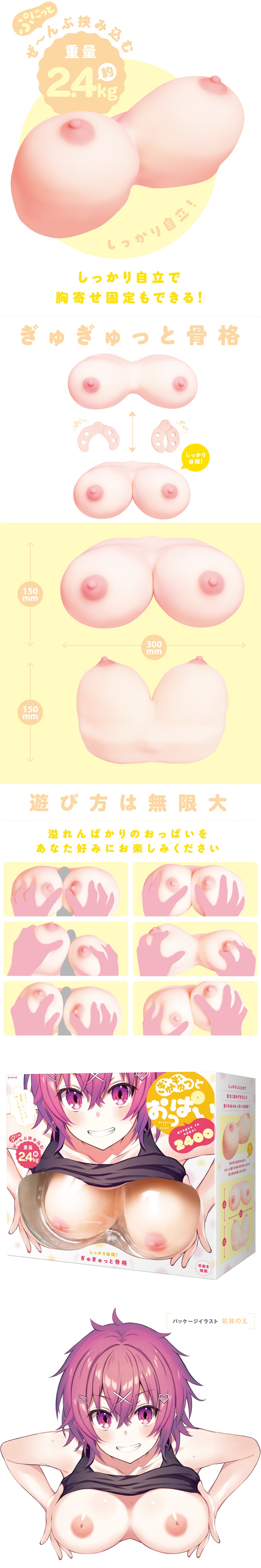 撥一撥可以夾緊緊的特大歐派登場!可以整根夾在Q彈之間,約2.4kg的BIG尺寸!!通過引入可以好好獨立定型撥好的胸部的「夾緊緊骨架」,讓您雙手解放也能夾好玩好的優秀商品。搭配骨架零件,穩定感也同樣出眾!有了堅實的底盤,實現了不會因為重力而被壓垮,堅挺有彈性的歐派。由於它往不會左右兩邊散開,因此可以保持漂亮的形狀。請多多的揉搓無法一手掌握的Q堅挺的歐派,盡情享受吧。