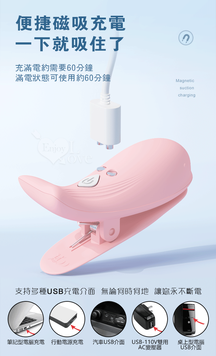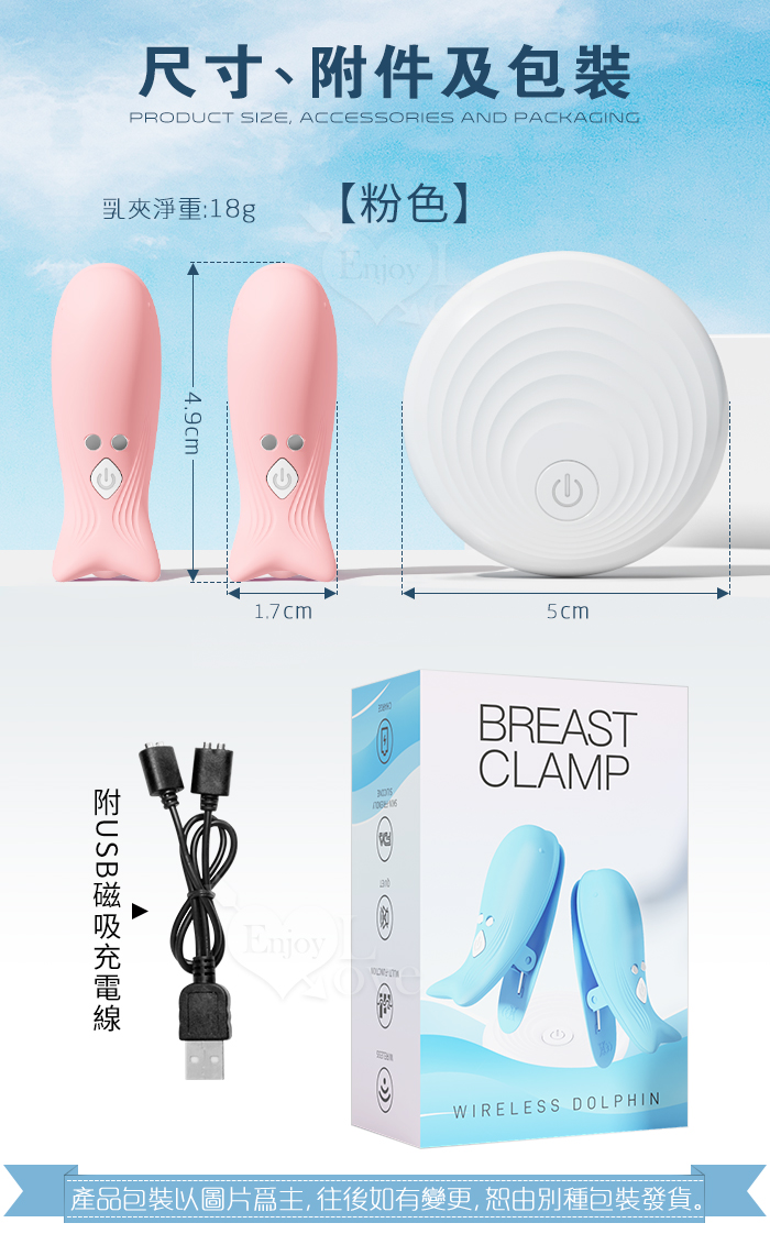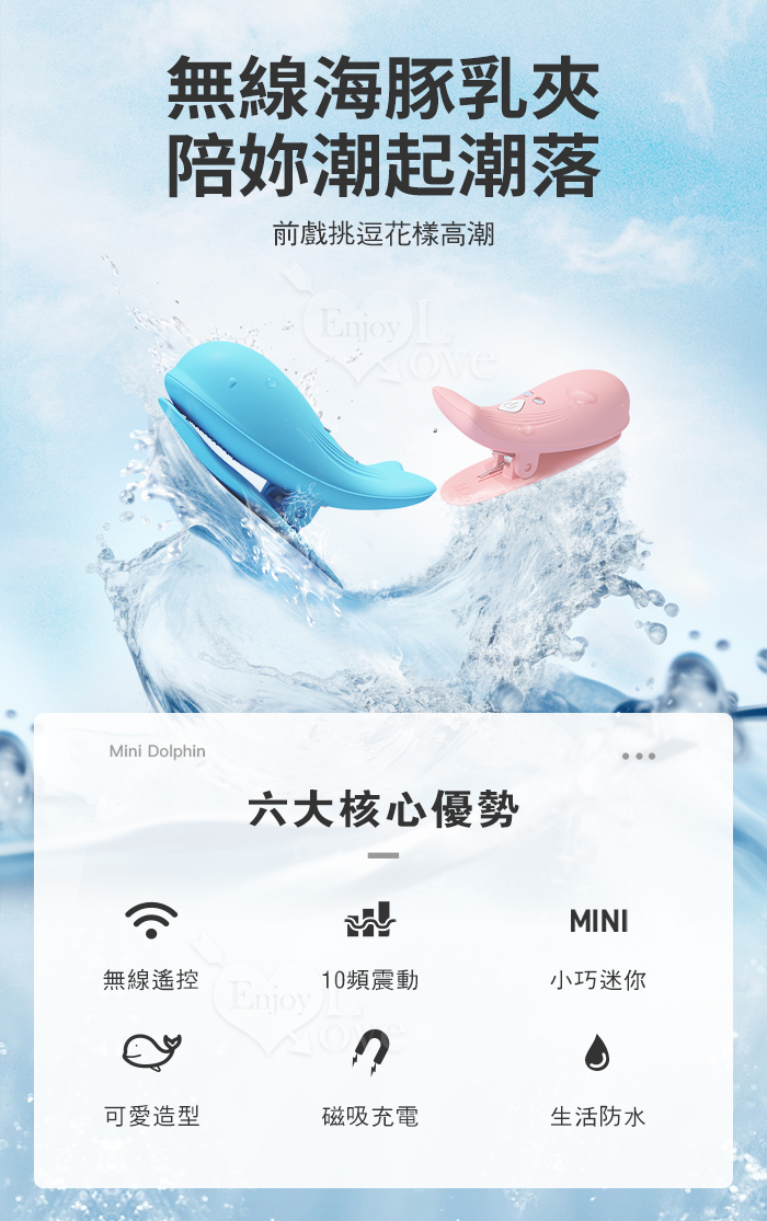►您現在的位置:首頁>Dolphin 小海豚 ‧ 無線遙控10頻強勁震動磁吸充電乳夾 - 自由掌控/前戲挑逗﹝粉﹞