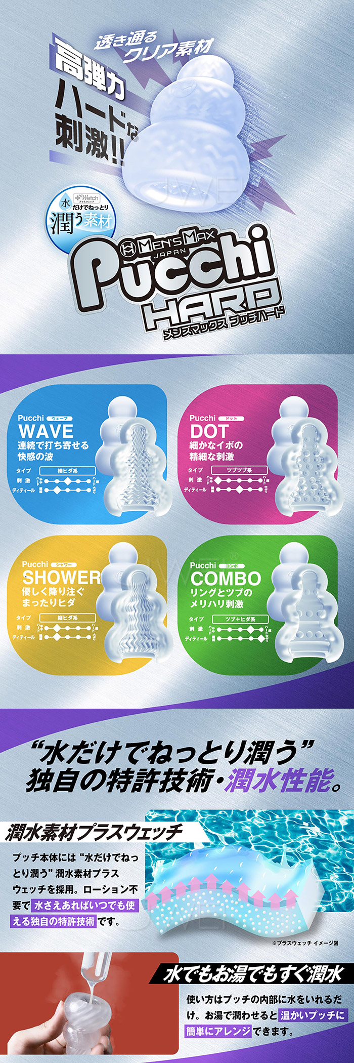首頁>日本原裝進口MENS MAX . Set Box Variety 自慰套4入組 無需潤滑液 只需要水 即可使用