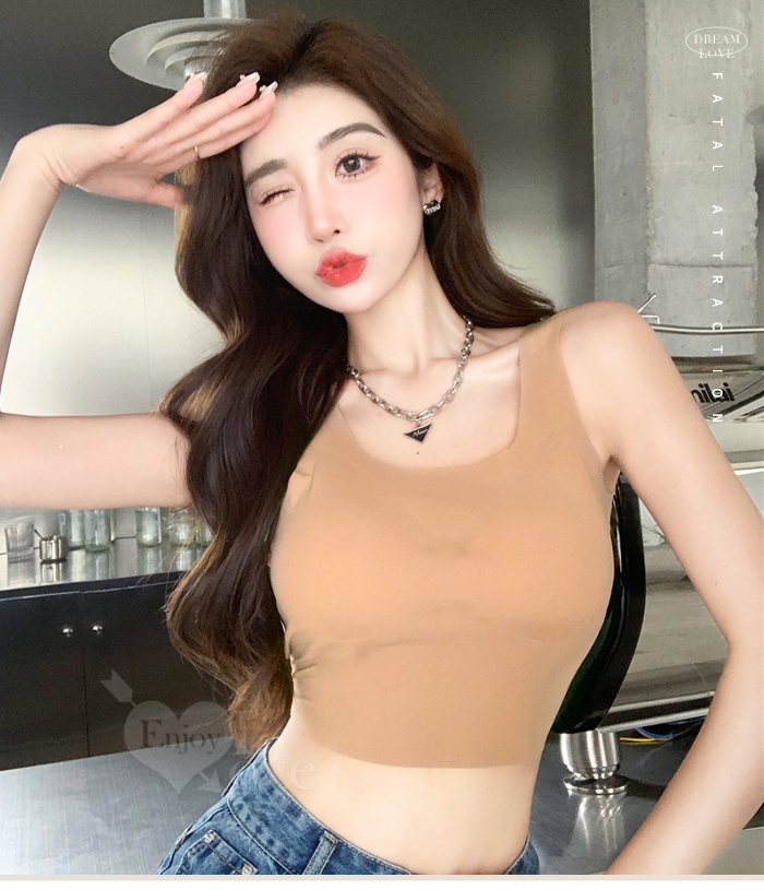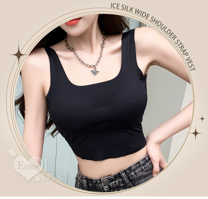 | 冰絲柔滑寬版肩帶修身裹胸背心﹝白﹞