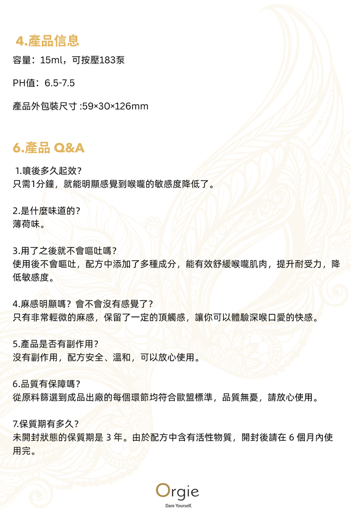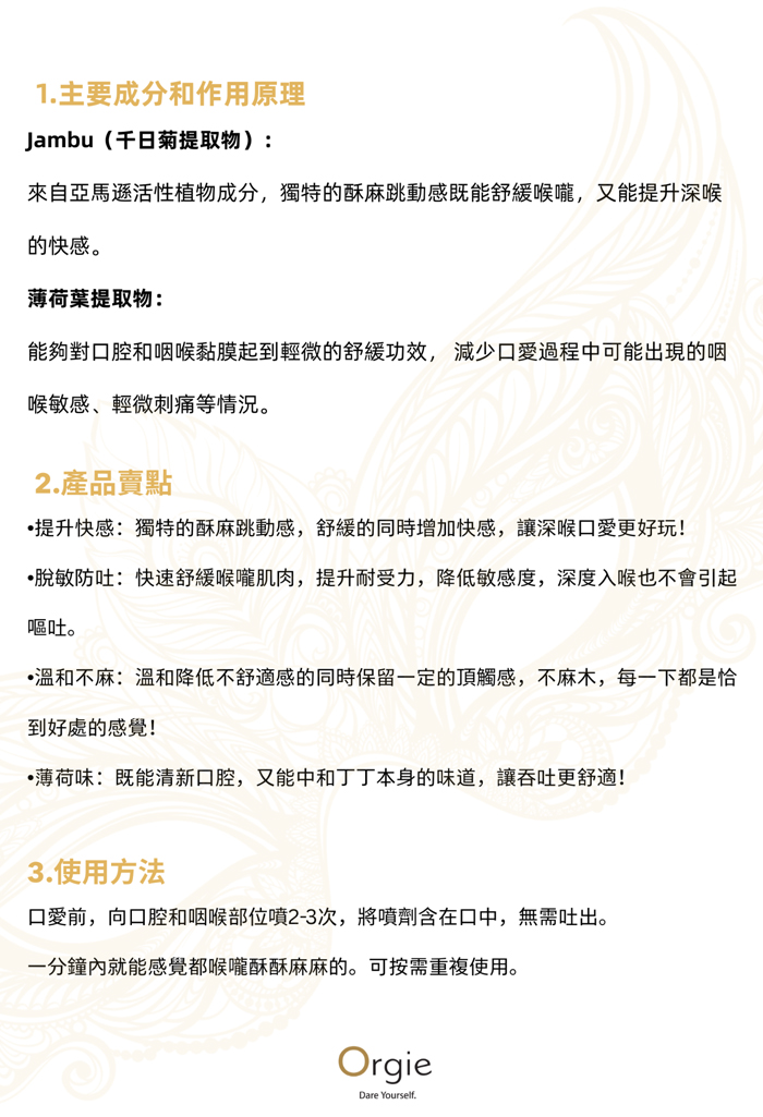 葡萄牙Orgie.Oral Ease 深喉舒緩噴霧~溫和不麻~提升口愛快感 15ml