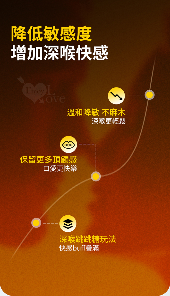 · 提升快感:獨特的舒緩放鬆成分,讓深喉口愛更深入以外,