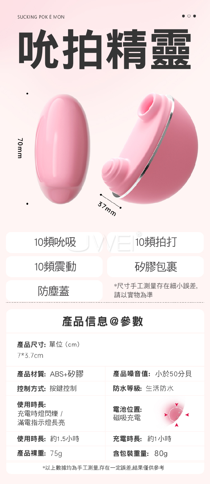 | 吮拍精靈.10段爽吸強震+激情拍打C點 附防塵蓋超震感吮吸器