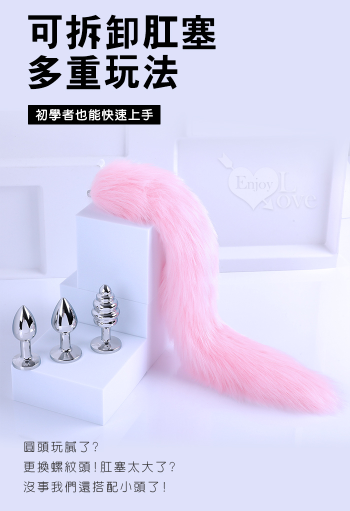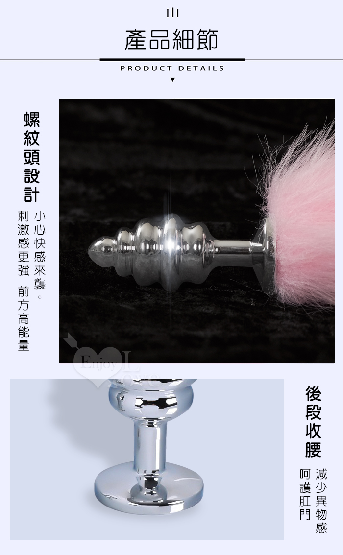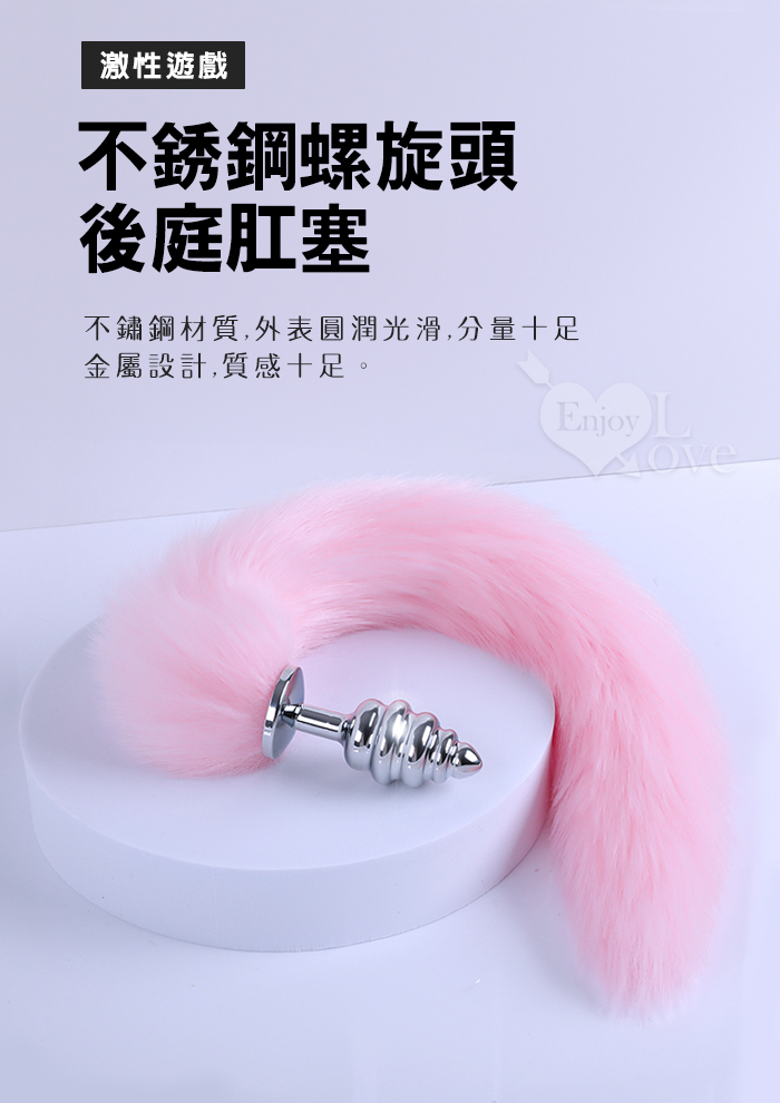 | Sporting激性扮演遊戲 ‧ 人造毛尾巴+不銹鋼螺旋頭後庭肛塞 - 粉﹝可組裝拆卸﹞
