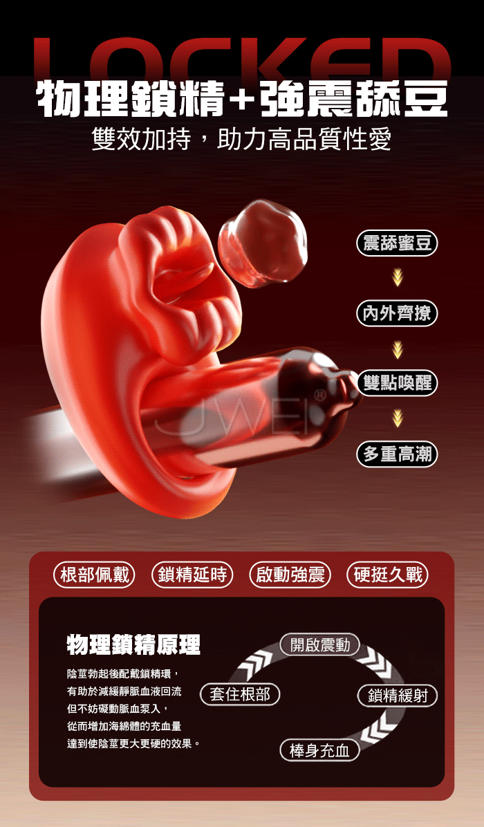 物理鎖精+強震舔豆,雙效加持,助力高品質性愛