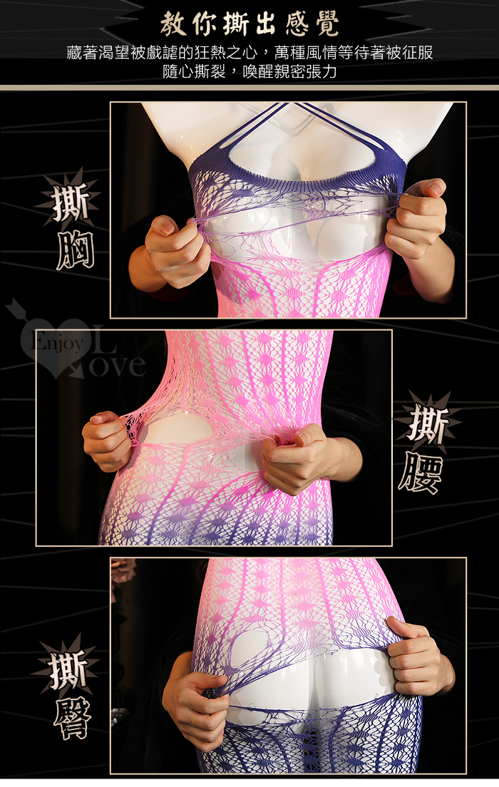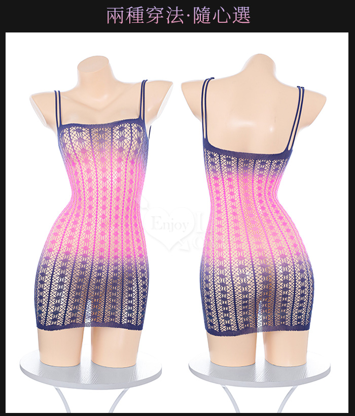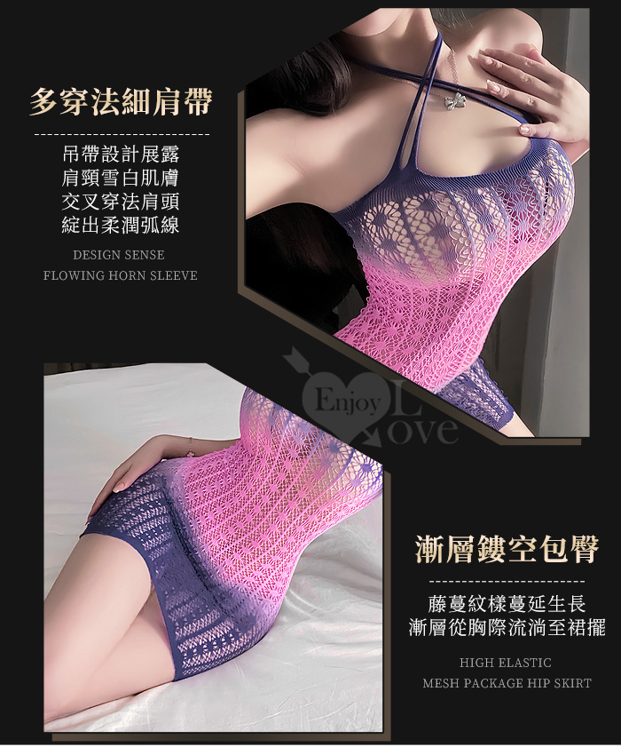| 可撕鏤空網紗連身裙|漸層彈力包臀睡衣・交叉肩帶多穿法