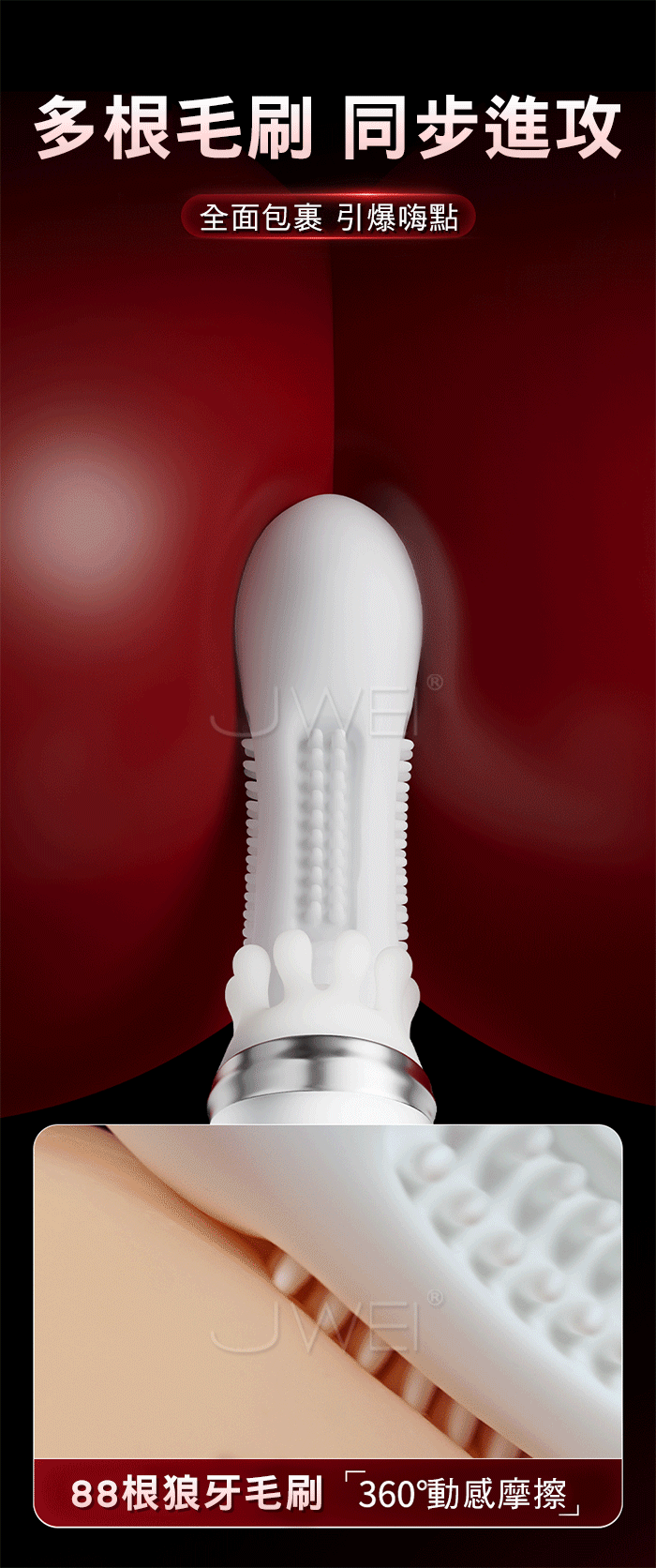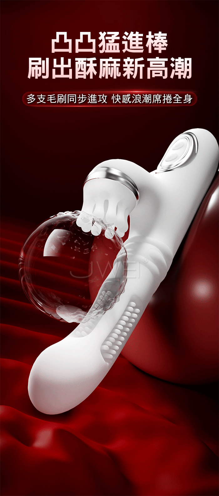 凸凸猛進.8x8x8頻伸縮拍打撩震+88根軟刺毛刷 G點爽潮加溫按摩棒