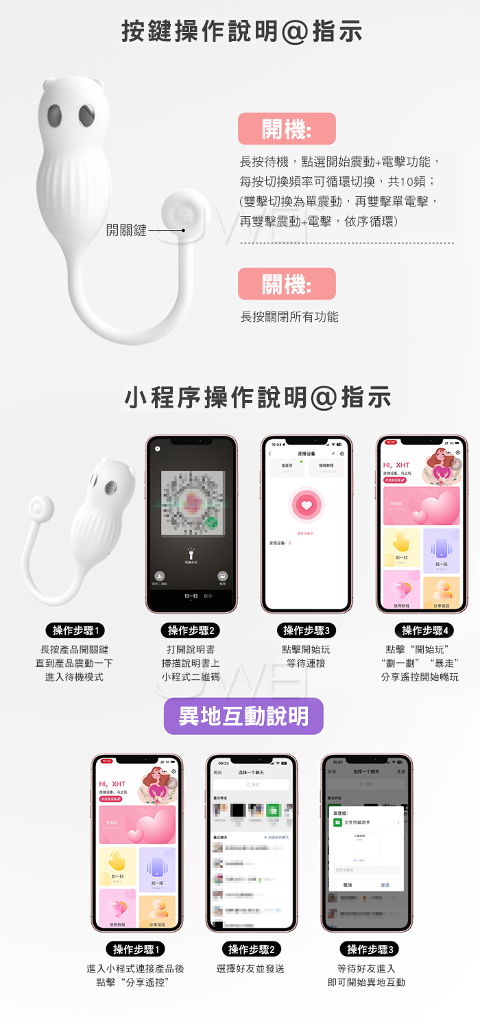 ►您現在的位置:首頁>謎姬 MizzZee.小熊.10x10段穿透式酥震+微電流刺激 APP異地互動電擊跳蛋