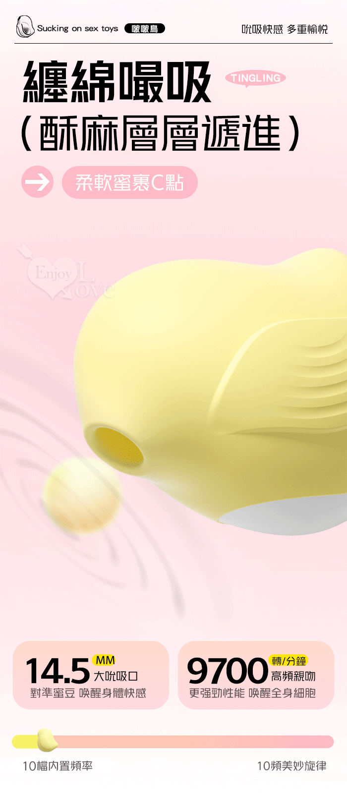 ►您現在的位置:首頁>啵啵鳥 ‧ 萌寵玩物 升級Sonic10頻聲波吮吸酥麻顫抖/前戲調情/吸乳吸陰按摩器﹝檸檬黃﹞