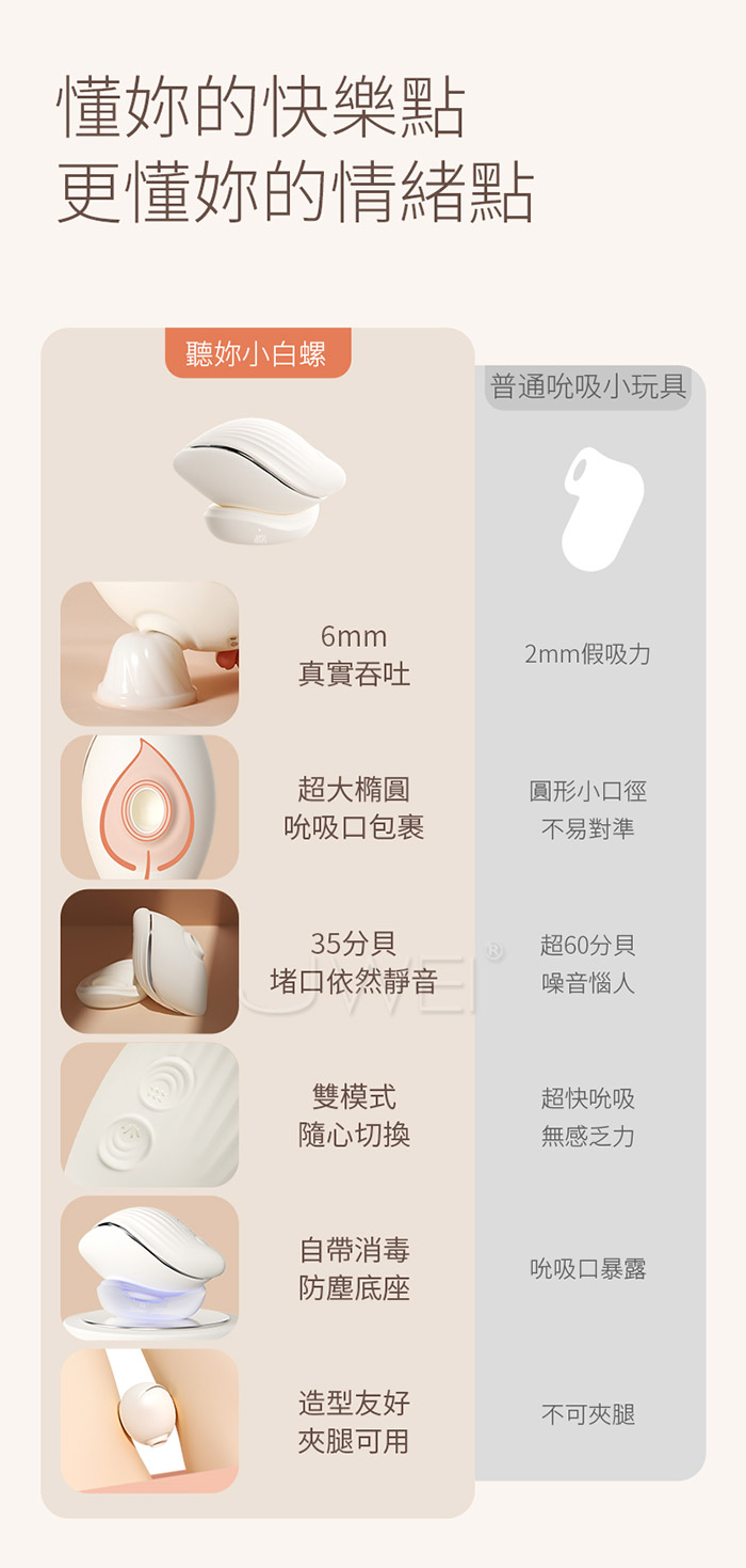 | EROCOME伊珞.Conch 小白螺 8頻吸震雙模式慢玩 紫外線滅菌 靜音深吻吮吸跳蛋