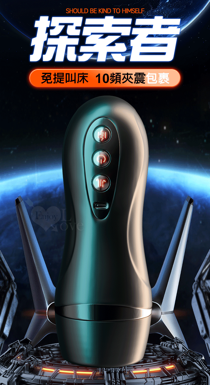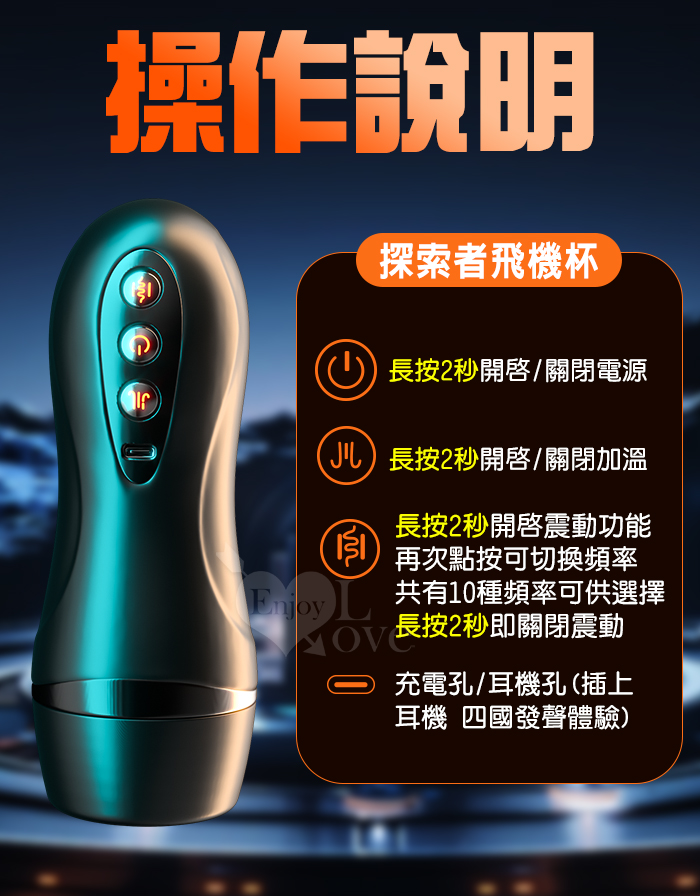 | 探索者.免提叫床10變頻震動打飛機杯自慰杯(四國語音呻吟+加溫+免持吸盤+附耳機+USB充電﹞