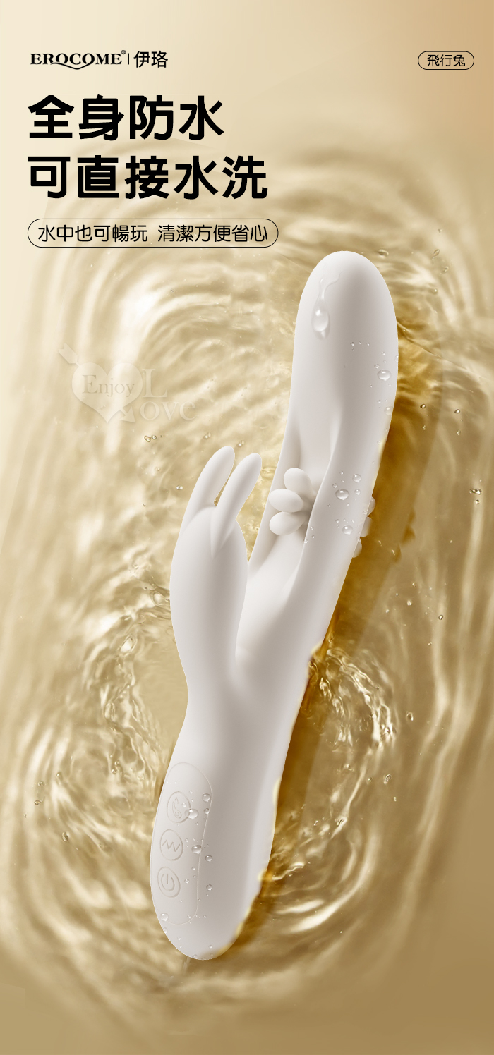 EROCOME伊珞.Flying Bunny 飛行兔 10x10頻飛輪軟舌兔耳震動拍打雙震加溫3合1按摩棒